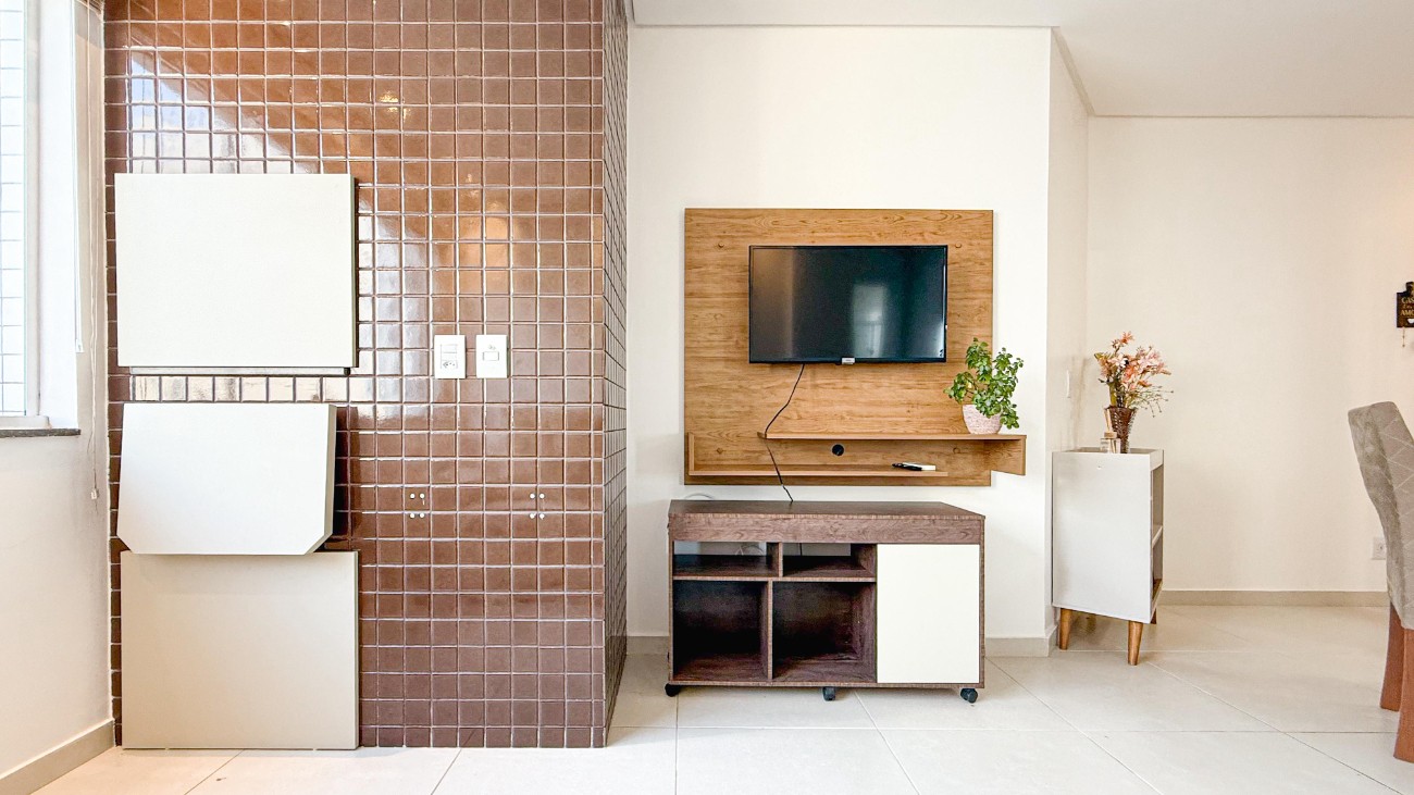 Apartamento com 2 dormitórios, living para 2 ambientes, cozinha americana e churrasqueira. Mobiliado, fica próximo da Av. Central e tem vista pro mar. Agende uma visita e conheça esta oportunidade!